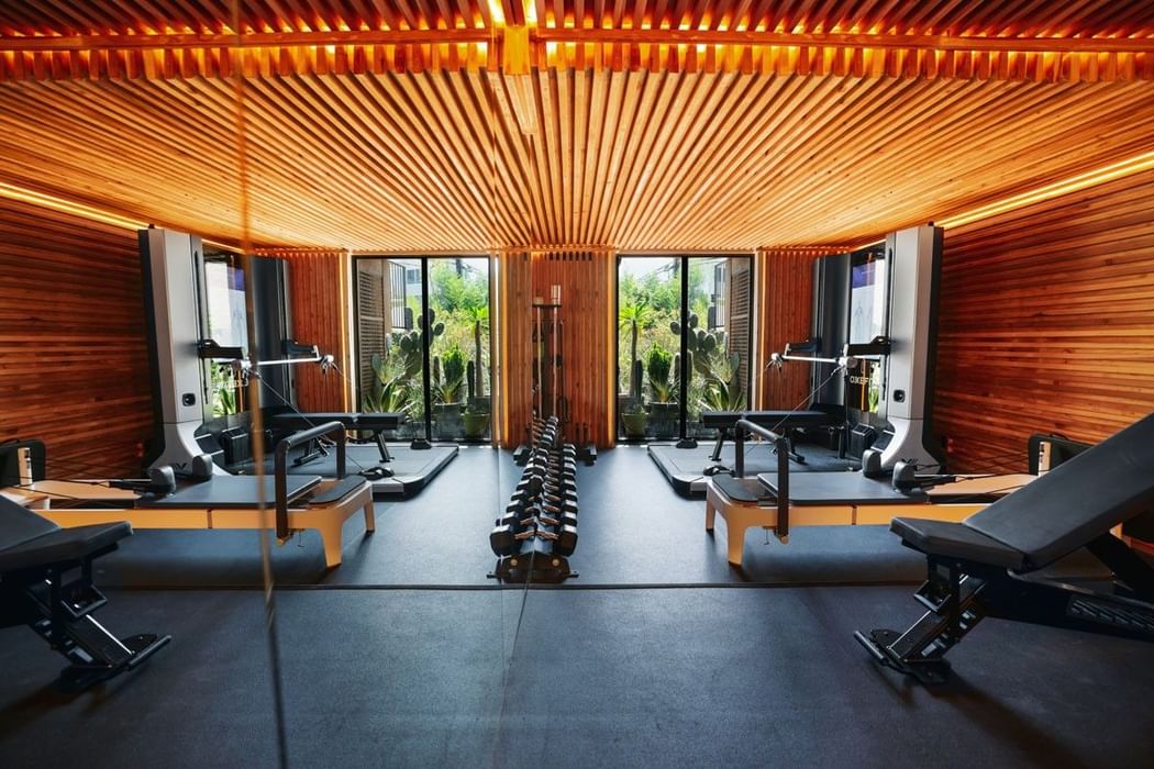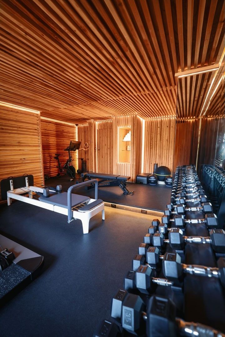 Our fitness studio is designed with the same intention as our suites, intimate, warm, and quietly elevated. Wrapped in rich wood and soft light, it feels more like a private retreat than a conventional gym. State-of-the-art equipment supports strength, conditioning, and focused training without spectacle or crowding. Here, movement is personal, unhurried, and entirely your own.